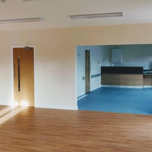 8m x 10m (80m2 ) hall space with a 36m2 cafe space